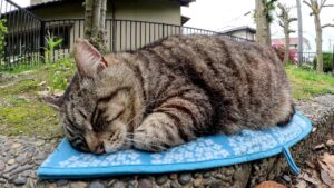【悶絶】「あぁ、そこが極楽ニャ……」公園で暮らすふっくら猫ちゃん。ブランケットの上で身を委ねる“至福の毛づくろい”に癒やされる!