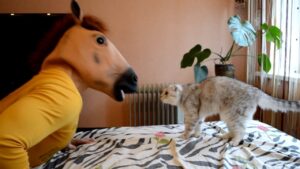 【驚愕】「パパ、顔がヘンだニャ…!」リアルな猫マスクを被った飼い主さん。愛猫たちの“三者三様”すぎるリアクションに爆笑!
