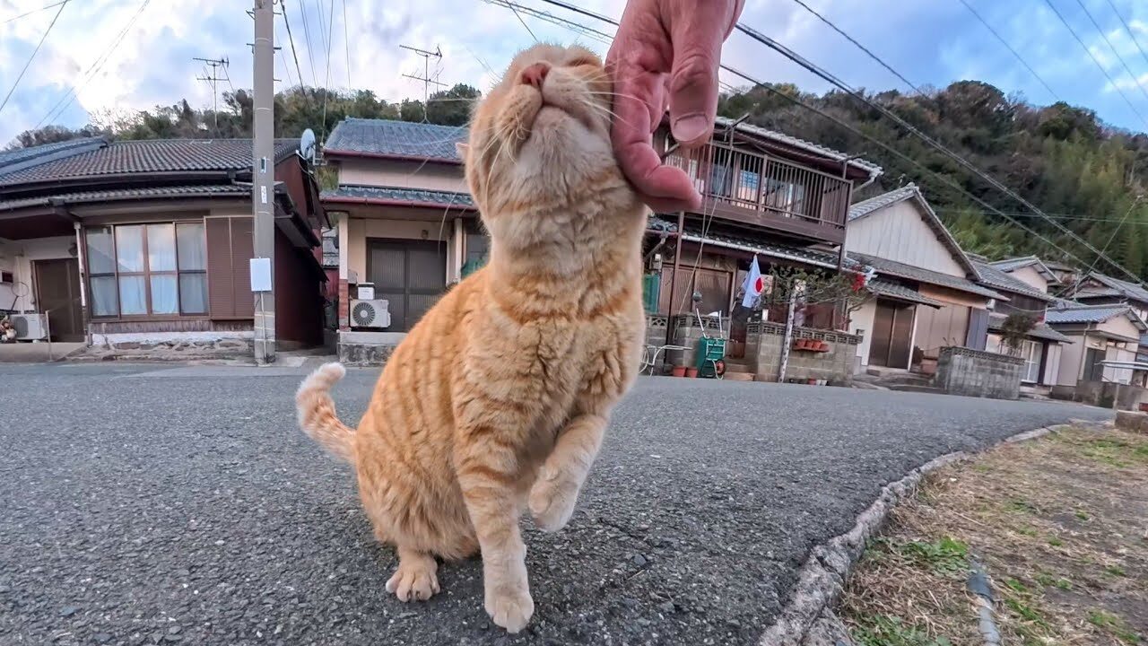 海風が心地よい漁港で、人懐っこい茶トラ猫と「しっぽピン」の追いかけっこ!