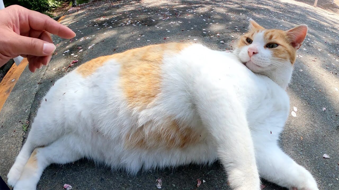 お散歩中、こんなに無防備な猫ちゃんに出会えたら、それだけで1日が幸せになりそう。道端でゴロンと横たわる、貫禄たっぷりの茶シロ猫。でも、その姿はまるで「なでて!」と言わんばかりの全力アピールなんです。