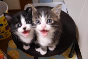 そんなお父さんの横では、4匹の子猫たちが身を寄せ合ってカメラをじーっ。お父さんがどれだけ深い眠りについていても、子猫たちは元気いっぱい!一匹の子猫がお父さんの顔をトントンと叩いて「ねえ、遊ぼうよ〜」とアピールする姿には、思わずキュンとしてしまいます。