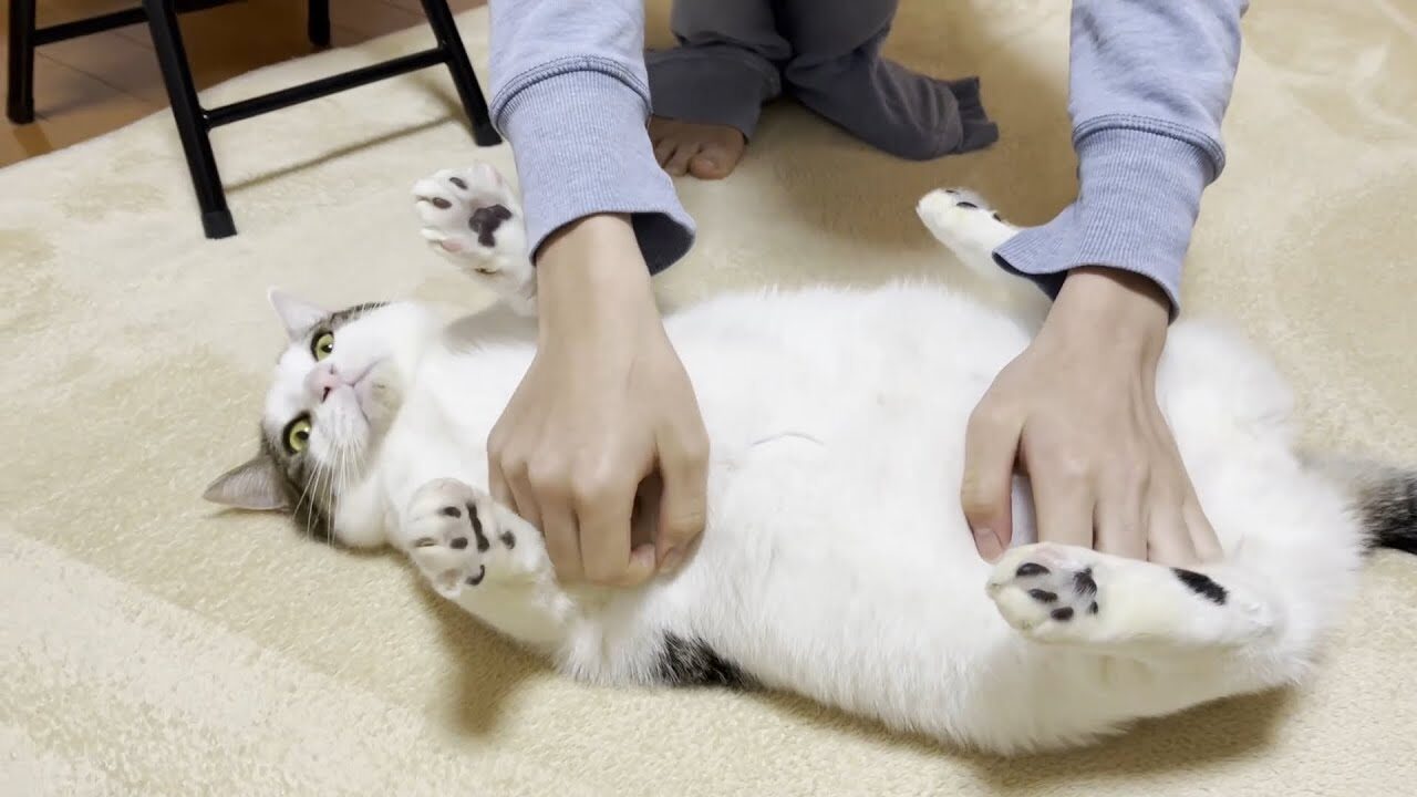 撫でると“米俵”に大変身!?ポテッと転がって甘える猫さまの姿に悶絶♡