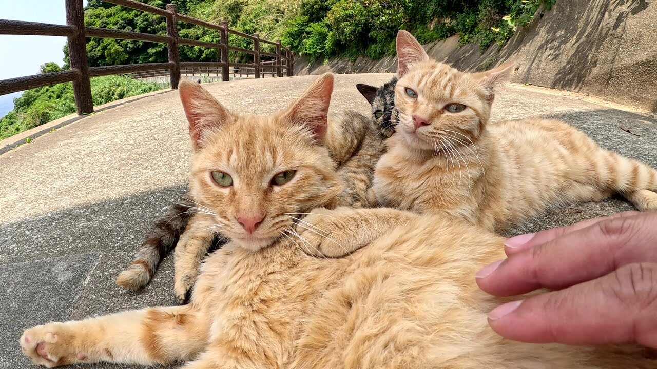 飼い主さんが優しくナデナデすると、みんなとっても気持ちよさそう。中には「もっと撫でてニャ」とおねだりする甘えん坊さんもいて、その愛くるしさに悶絶必至です。最後には、猫さまたちがくつろぐ道の先に広がる、美しい海の景色も。こんなに可愛い通行止めなら、いつまでも足を引き止めておきたくなっちゃいますね。