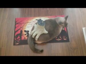 【悶絶】「ねえ、何してるニャ!?」背中を優しくトントン…してくるのは、なんと“動く手”のオモチャ!?驚きと癒やしのハロウィン動画♡