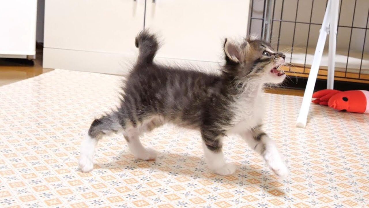 お口を大きく開けて一生懸命に鳴く姿や、ママの足元に駆け寄って甘える仕草は、まさに「反則級」の可愛さ。そんな子猫さまの純粋でまっすぐなおねだりに、ママも、そして私たち視聴者も、すっかりメロメロになってしまいます。