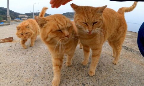 「いらっしゃいニャ!撫でてもいいんだニャ♡」と言わんばかりに、ゴロンと横たわってお腹を見せる姿は、まさに究極の神対応。あまりのフレンドリーさに、船を待つ時間も最高の癒やしタイムに早変わりしてしまいます。