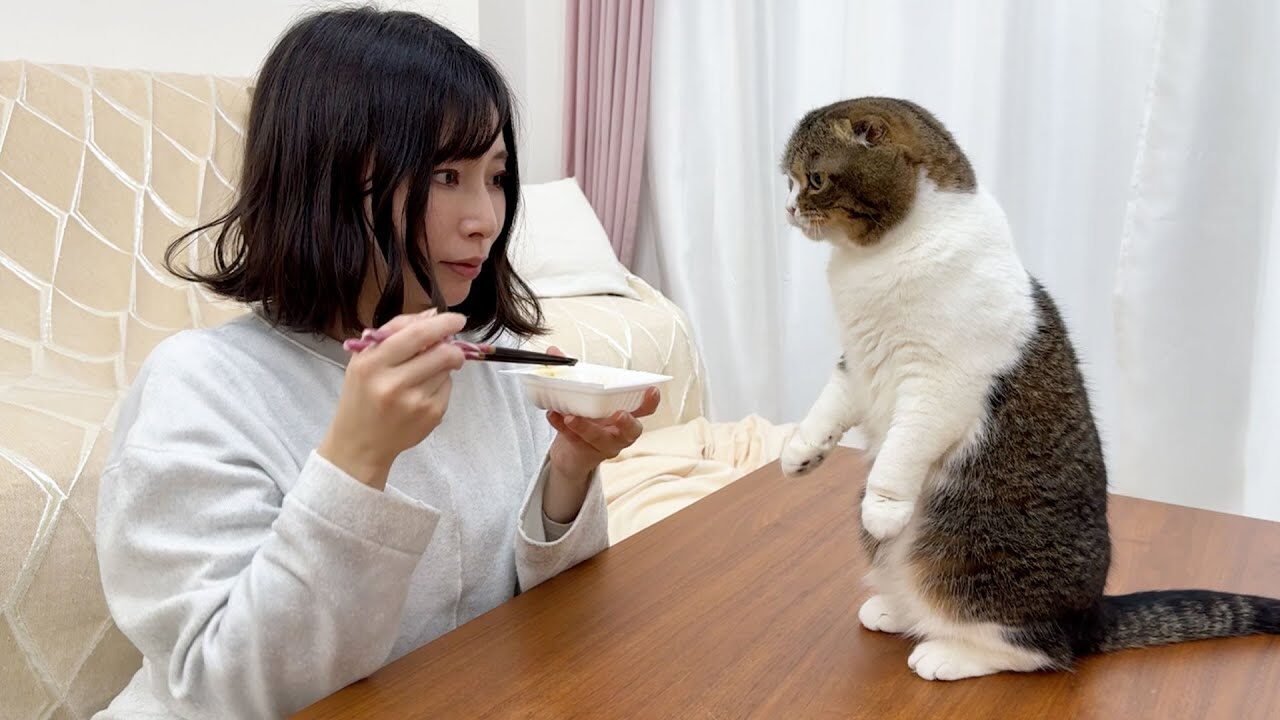 皆さんは、愛猫が人間の食べ物に興味を示して、鼻をヒクヒクさせながら寄ってきた経験はありませんか?今回ご紹介するのは、飼い主さんが朝食(?)の「納豆」を準備しているところにやってきた、スコティッシュフォールドの「ぽこ太郎」くんと「うま次郎」くんの様子です。