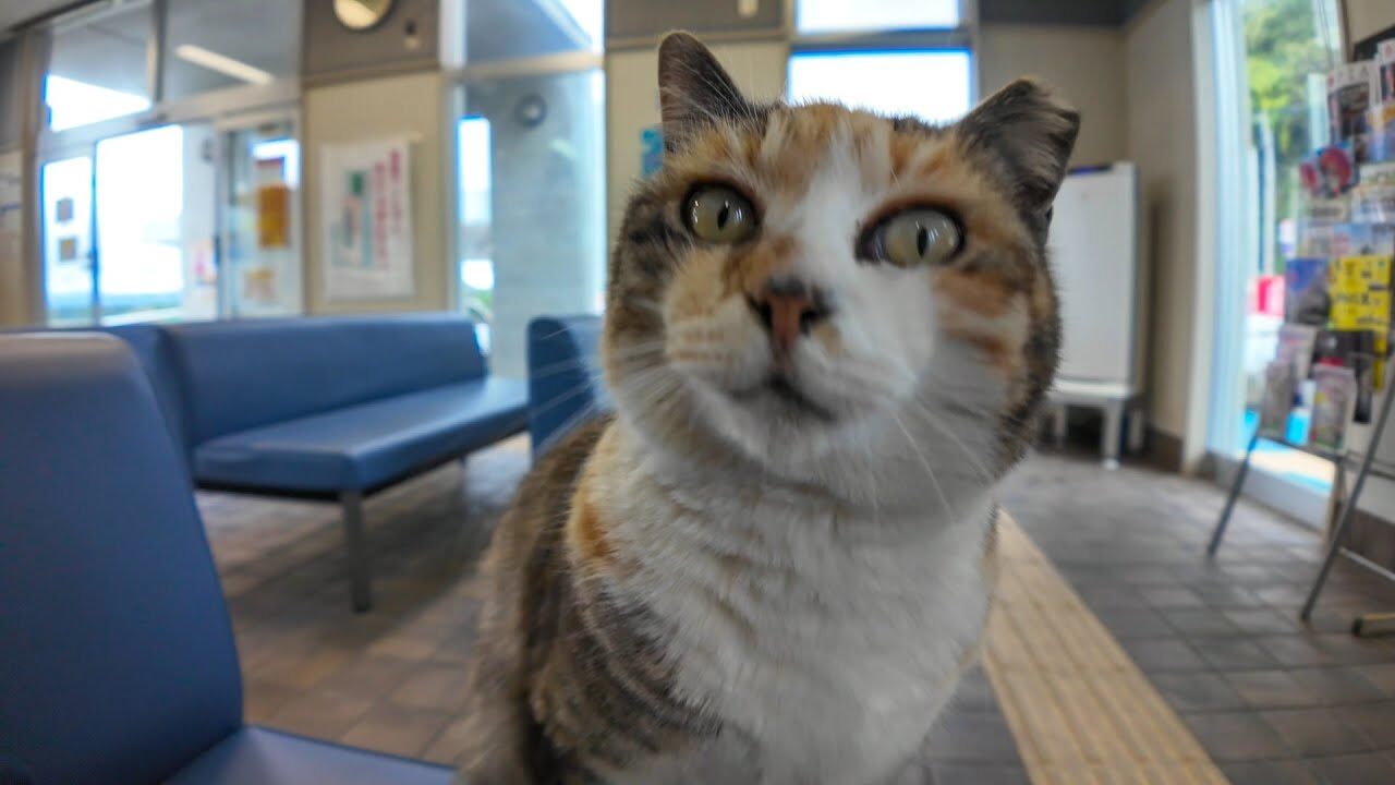 フェリーを待つ間のサプライズ!待合室にいた三毛猫ちゃんの「おもてなし」が神すぎる