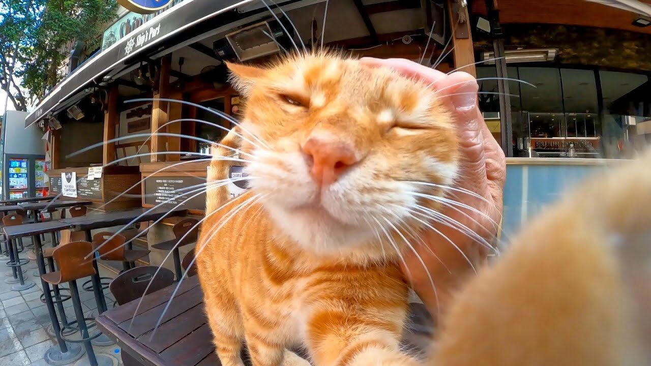 そんな猫ちゃんを見つけた通行人が、思わず足を止めて頭をなでなで。猫ちゃんも慣れた様子で目を細め、喉をゴロゴロと鳴らして応えます。その姿は、まさに接客の鏡!「美味しいコーヒー、いかがですか?」なんて声が聞こえてきそうなほど、自然体でお店に溶け込んでいます。