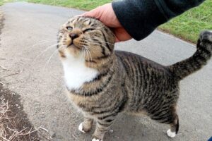 人間に頭をなでられても、子猫への愛は変わりません。 しっかりと抱きしめるようにして、わが子の成長を静かに見守っています。 そんな親子猫の深い絆に、心がほっこりと温まるはず。
