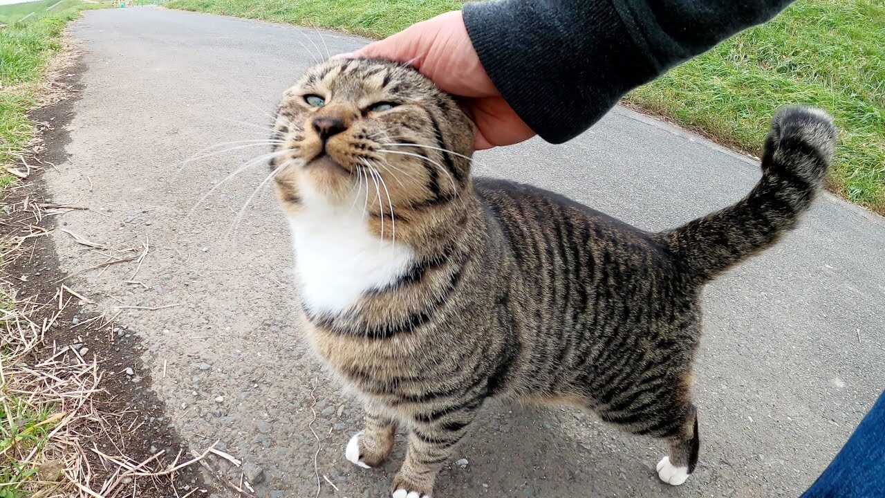 散歩道で出会った、キジトラの野良猫。 最初は少し警戒している様子でしたが、ゆっくりと距離を縮めていくと、驚くべき変化が……!