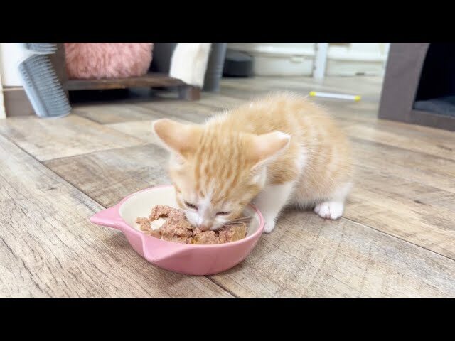 「うまいうまい!」とおしゃべりしながら食べる姿が可愛すぎる!生後37日の子猫ミドくん
