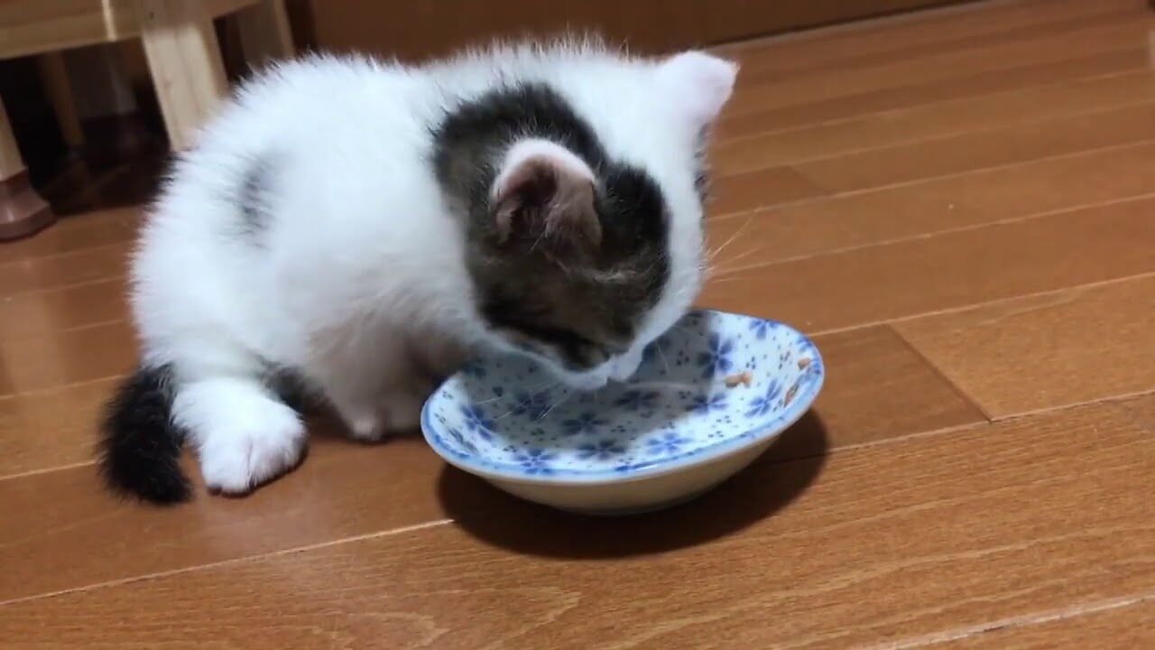 今回の主役は、まだあどけない表情がたまらない子猫の「おでこ」ちゃん。食欲旺盛な彼女は、飼い主さんが用意してくれたご飯を一生懸命、夢中で食べ進めます。小さな口を動かして「モグモグ」と食べる姿は、見ているだけで幸せな気持ちになれますね。