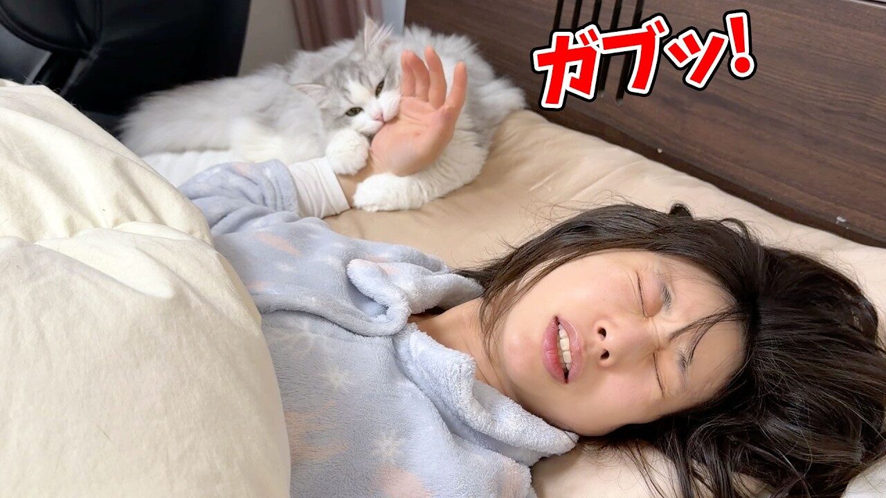 「ママ、起きて!」朝6時の熱烈(?)なモーニングコール。甘噛みでおねだりする子猫のしろがね丸くんが可愛すぎる!