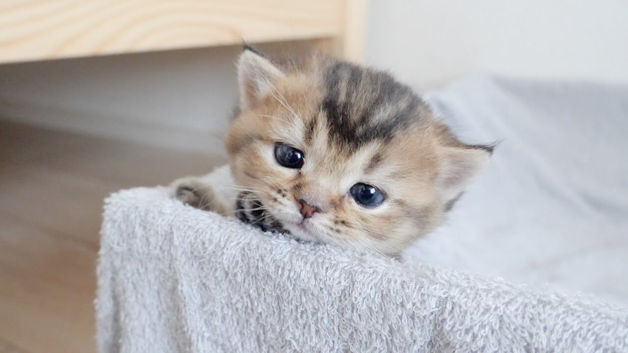 「ミャーミャー」と可愛い声で鳴きながら、何度も何度も挑戦する姿は、見ているだけで応援したくなってしまいます。 やっとの思いで身を乗り出したかと思えば、バランスを崩してコロンと転がってしまう場面も。 その、子猫ならではの危なっかしくて一生懸命な動きに、癒やし効果バツグンです!