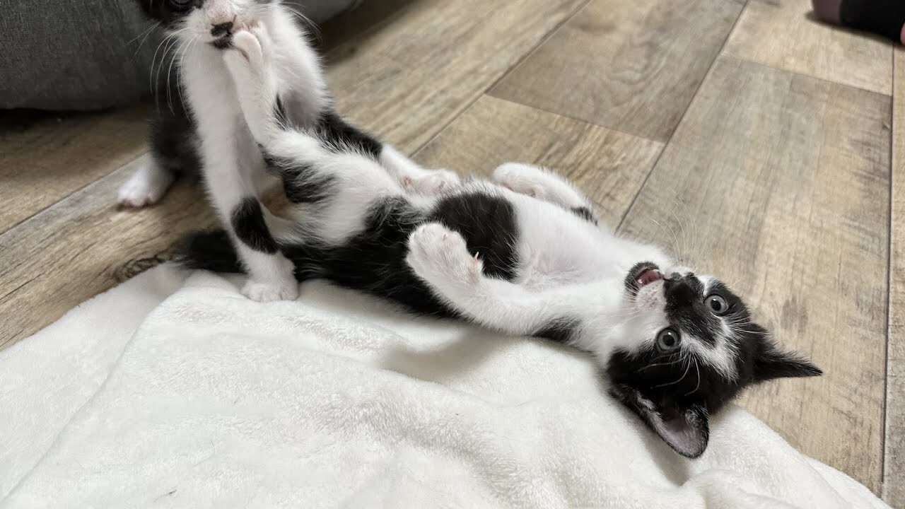 その中の子猫が、ぷつんと電池切れしたみたいに急に静かになったと思ったら…まさかの体勢で爆睡スタート!