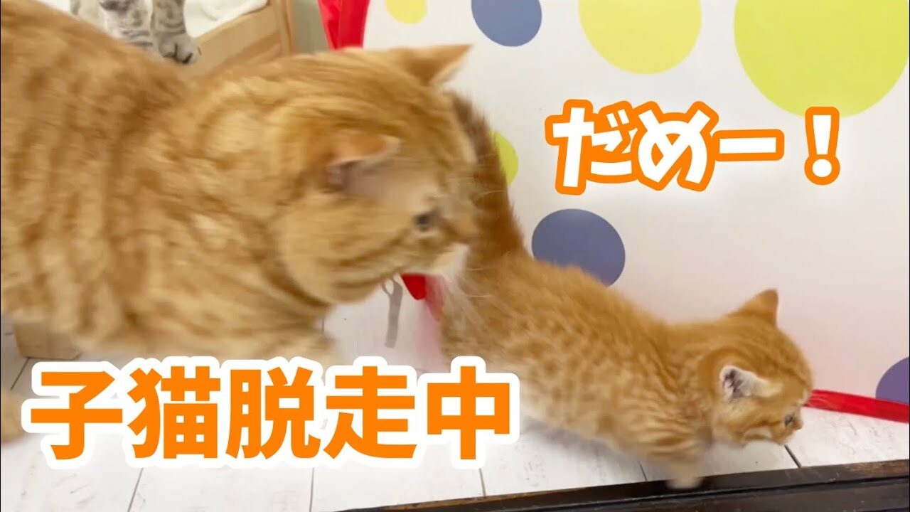 ようやく出てきた瞬間、茶々パパが一生懸命サークルへ戻そうとするのも健気です。