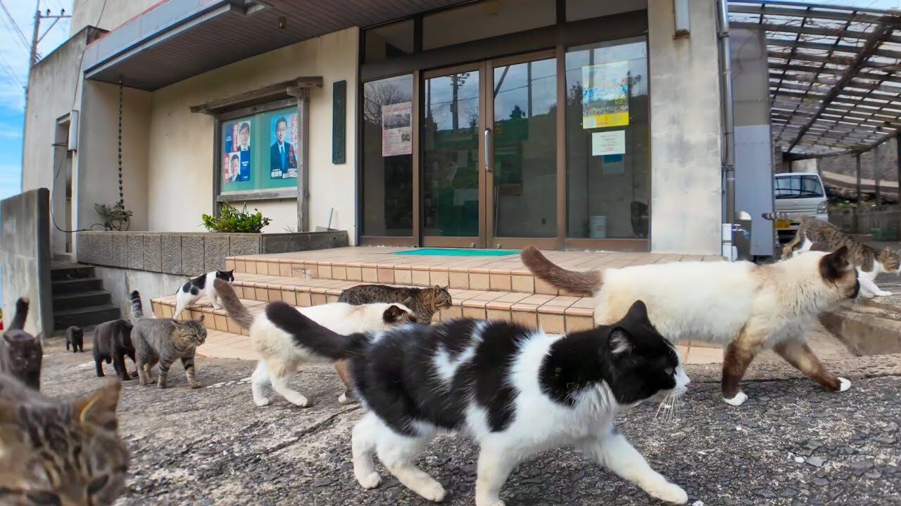【癒やし】「こっちだニャ!」港で出会った黒猫に導かれた先は…猫の集会が尊すぎた♡