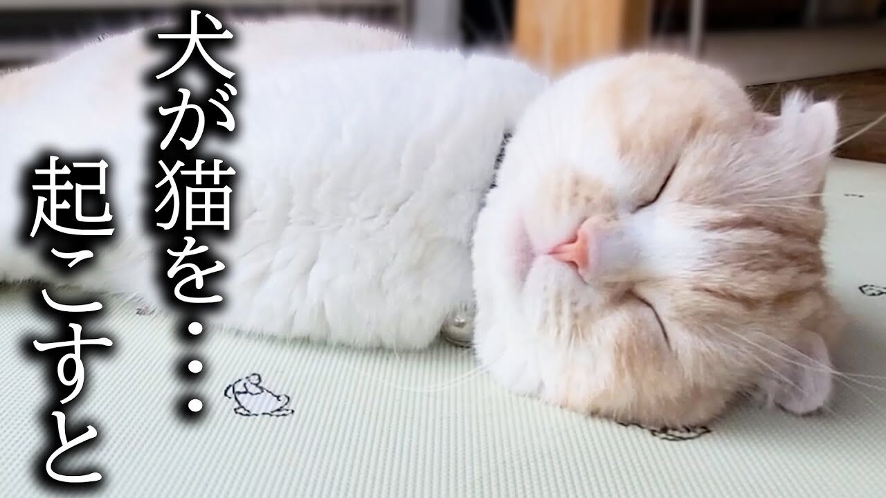 シベリアンハスキーのはっちゃんと、スコティッシュフォールドのじゅんちゃん。今日はじゅんちゃん、珍しく朝寝坊のようです。深夜に一人で運動会をしていたのでしょうか、ぐっすりと眠りについています。