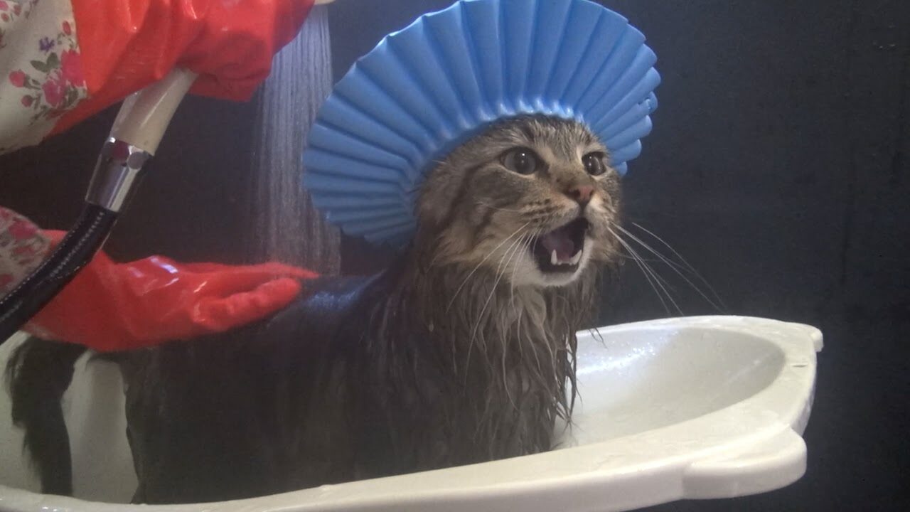 通常、猫ちゃんをお風呂に入れるのは一苦労……という飼い主さんも多いはず。 しかし、おさむくんはシャワーでお湯をかけられても、嫌がるどころかじっと目を細めてその温かさを楽しんでいるようです。 水色のシャワーキャップをかぶった姿は、まるでお風呂屋さんにやってきた常連さんのような風格さえ漂っていますね。