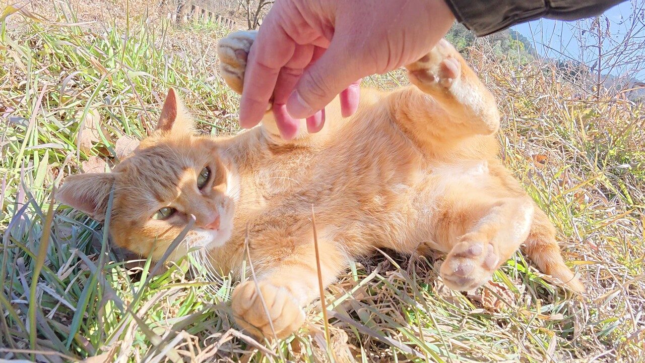 なでなでを始めると、嬉しさのあまりゴロゴロと喉を鳴らしながら、足元に体をすりすり。さらには、お腹を見せてゴロンと転がる「へそ天」まで披露してくれました。こんなに全力で甘えられたら、もう離れられなくなってしまいますね。