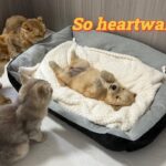 恐る恐る鼻を近づけてクンクンと匂いを嗅いでみたり、小さな前足でそっと触れようとしてみたり。一挙一動が慎重で、でも興味津々な様子は、まさに純粋無垢そのものです。