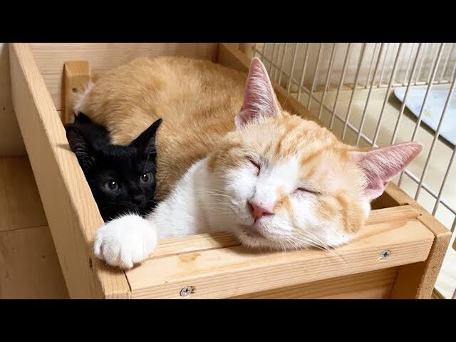 先住猫の横にすっぽりはまる保護子猫!「シンデレラフィット」な二匹の姿に癒やされる
