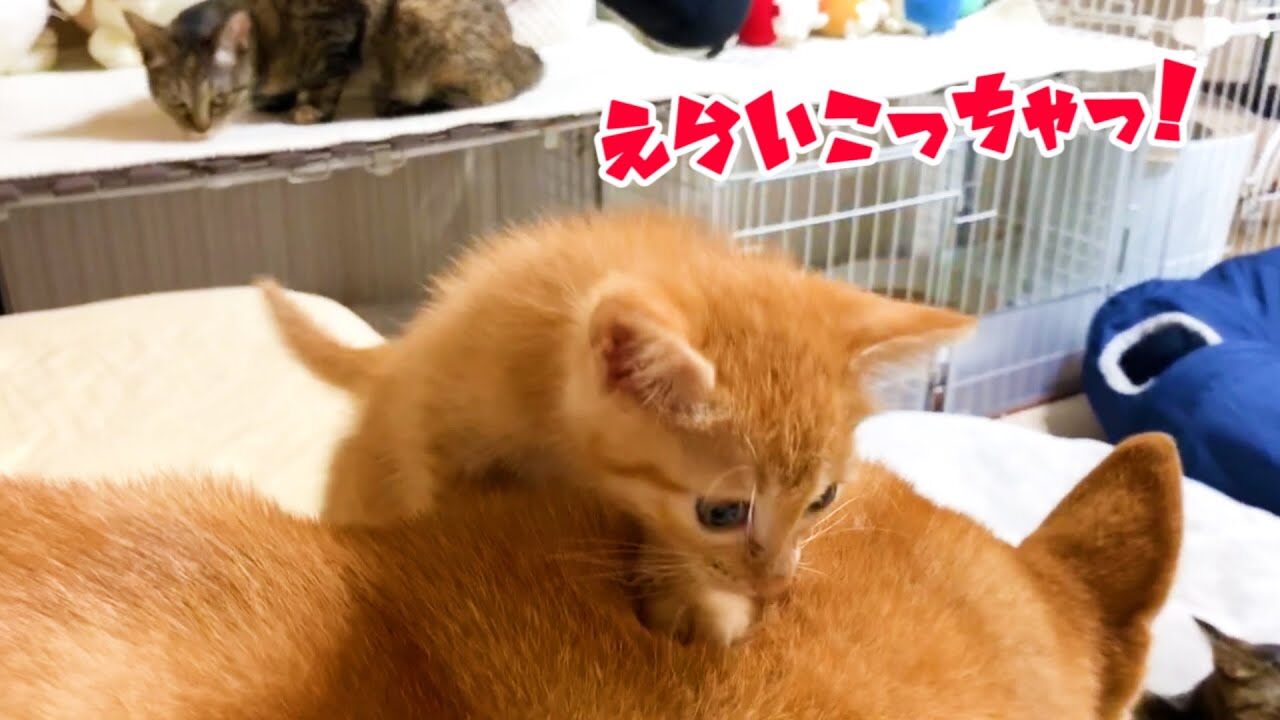先住猫に怒られて大慌て…柴犬を踏んづけて逃げる子猫に思わず笑ってしまう