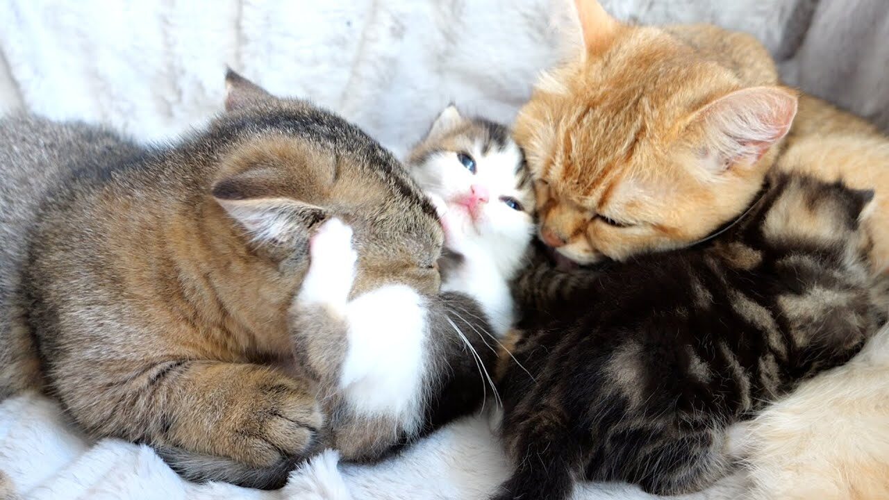 お母さん猫とお姉ちゃん猫の連携がすごい!子猫たちを見守るやさしい時間にほっこり