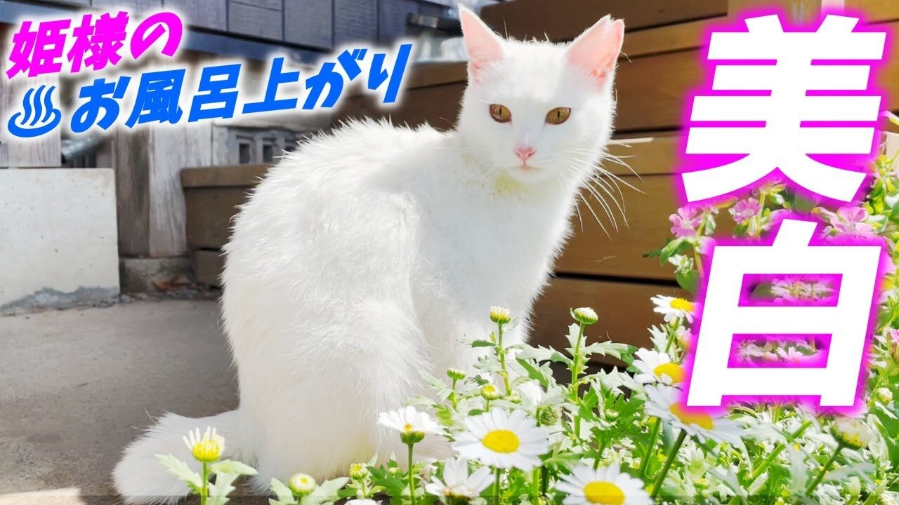 シャンプーしたらもっと真っ白に!庭で出会った白い子猫の可愛さがさらに輝いた