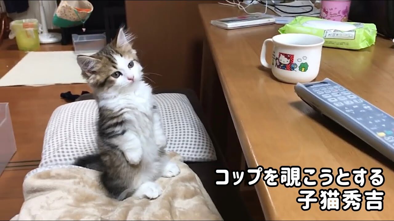 今回ご紹介するのは、人気チャンネル「ひのきネコ備忘録」から、子猫時代の秀吉くんの可愛すぎるひとコマ。テーブルの上に置かれたコップに興味津々な秀吉くんの姿が、視聴者の心を鷲掴みにしています!