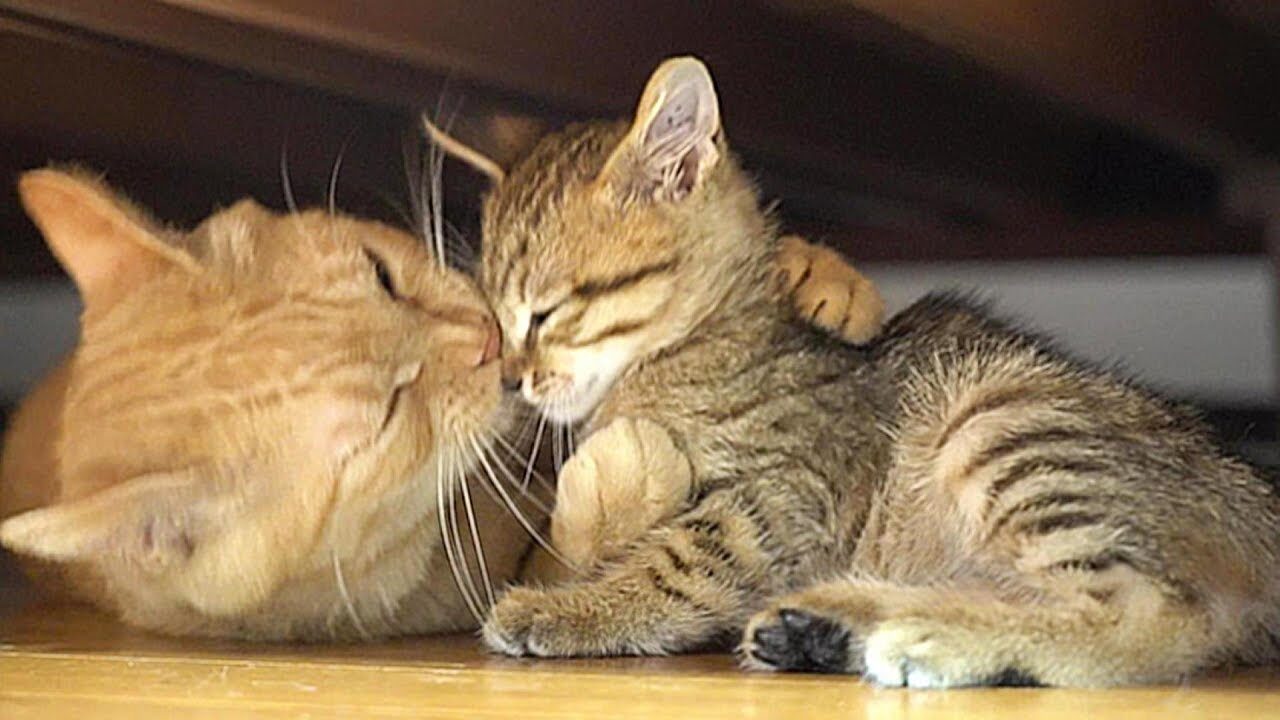 動画に映っているのは、新しいお母さん猫の胸に飛び込んでいく子猫の姿。血の繋がりはなくても、お母さん猫はやってきた子猫を優しく受け入れ、まるで本当の我が子のように丁寧に毛繕いをしてあげます。