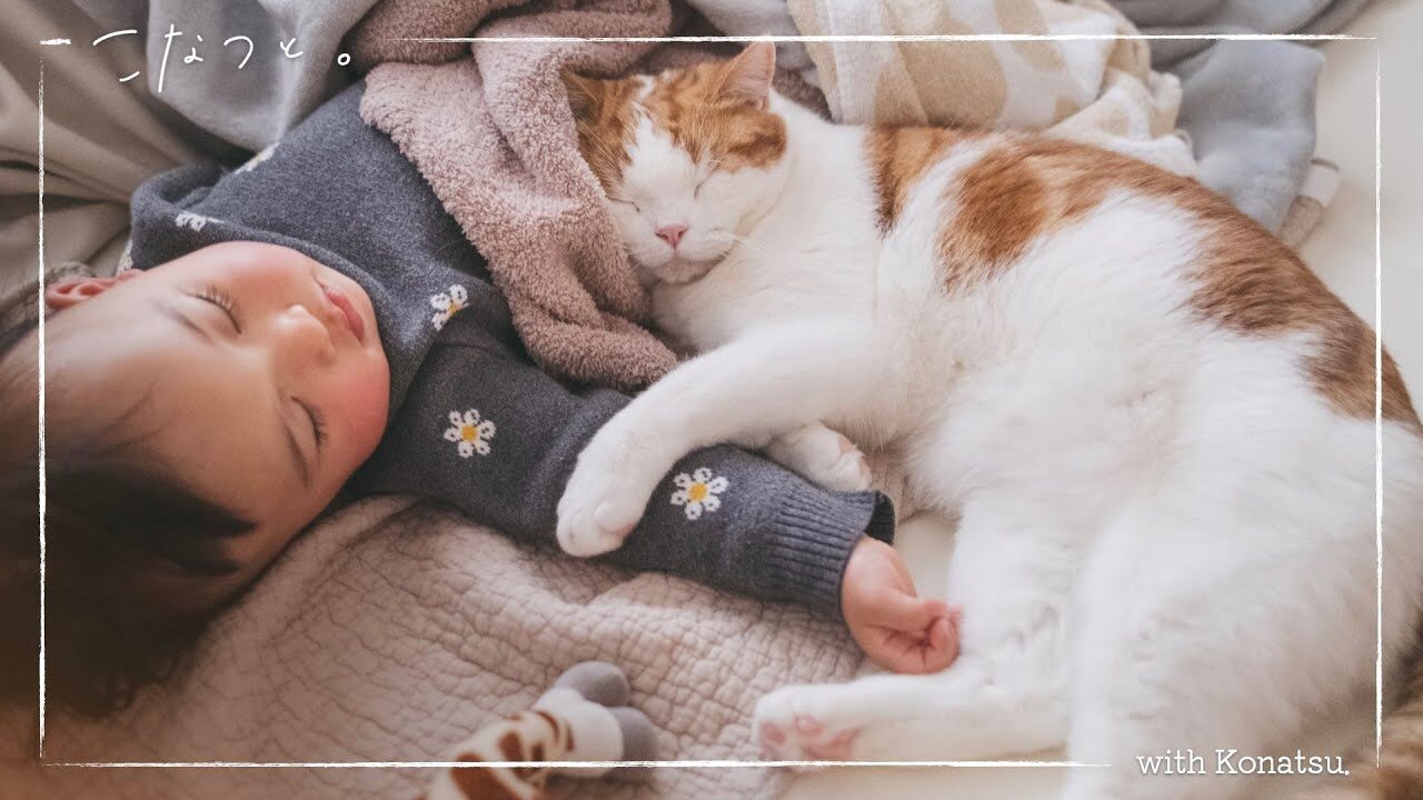今回の主役は、猫の「こなつ」ちゃんと、大好きな「妹」ちゃん。二人は今日もお布団の中でぬくぬくとお昼寝を楽しんでいます。よく見ると、こなつちゃんが妹ちゃんの小さなおててに自分の前足をそっと重ねて、まるでおててを繋いでいるような姿に!触れているとお互い安心するのか、スヤスヤと眠る二人の寝顔はまさに天使そのものです。