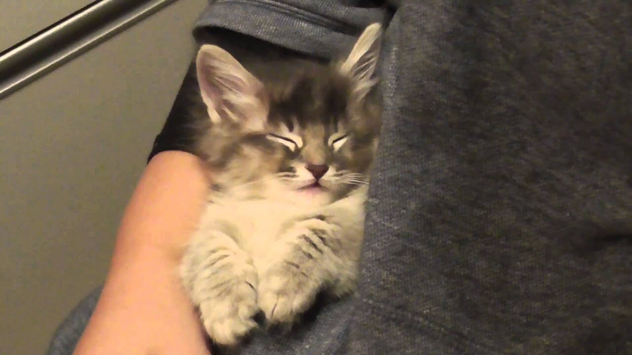 【悶絶】そこはボクの特等席ニャ♪パーカーのポケットにすっぽり収まって眠る子猫が「動くぬいぐるみ」状態!