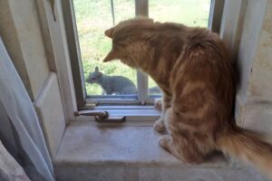 階段の高低差を利用してじゃれ合う姿や、鳴いているのを心配して駆け付ける母猫の姿も。