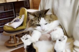 こうして飼い主さんは根負けし、膝の上で寝てもらうことに。