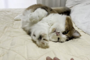 小さな前足を思い切り広げて全力でふみふみしている姿はとにかく愛おしいという言葉しか見当たりません。ふみふみしながらゴロゴロという甘えた音も出ていて本当に今この子は幸せなんだなということがわかります。