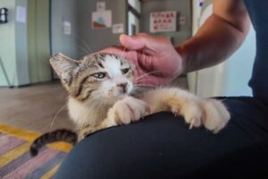 いくらマッサージが気持ち良いからと言っても、こんなに喧しい場所でリラックスできる猫はおそらく他にはあまり居ないでしょうね(笑)