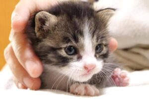 赤ちゃんと子猫の組み合わせはどうしてこんなに心温まるのでしょうか。赤ちゃんも子猫を優しく見つめながら一生懸命撫でてあげています。子猫も甘えるようにして大きな声で鳴いています。