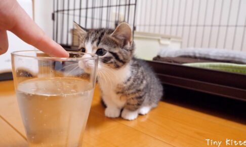飼い主さんが手を伸ばすと、子猫は手と遊ぼうとしたりコロコロと転がったり。