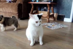 猫が生まれたての赤ちゃんを盛んに舐めてあげています。猫の色は白で、その新生児は黒い色をしていますので、まずほんとうの赤ちゃんではないように思えます。ですので、他の何かの生き物の新生児なのでしょうけれども、その赤ちゃんの親はいないのでしょうか。出産の後か、シャワーの後かはわかりませんが、盛んに毛並みを整えて、調整してあげています。このような自分の子供でない世話をする猫としては、人間としても共通する部分があるかもしれません。犬の赤ちゃんのようにも思えます。しかし、新生児としてすぐに整えられなければ、大変な状況ですので、盛んに命を守るべく、猫の義親は、一生懸命に手当をしてあげています。毛並みが乾燥すれば、大丈夫そうです。