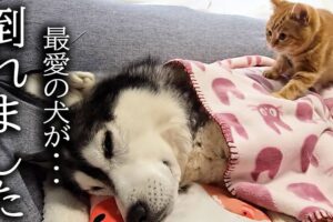 - 緊張の一瞬!先住犬のジャーマンシェパードと赤ちゃん猫が初対面