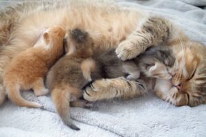 保護主さんがフロアに横になるとそこに子猫たちがわらわらと近づいてきてお腹の上に乗っかってきたりやりたい放題です。でもこんなに可愛い子猫たちが体の上に乗って甘えてくるのはなんとも至福の時間でしょうね。