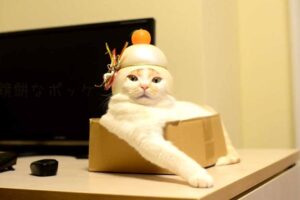 見ているとなんだかとてもダイナミックな寝方です。愛嬌があってすごく可愛いですね。お昼寝でもしているのかな?にぎやかなお部屋の中でも熟睡できる、たくましい性格のねこさんみたいです。カーテンが閉まってるけど、外は明るいみたいだよ。