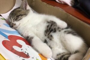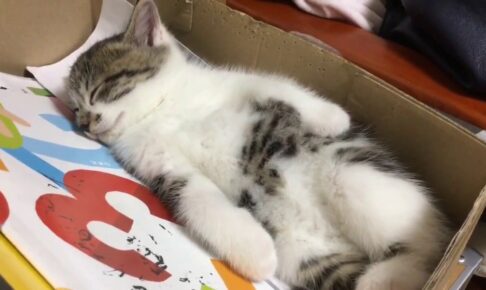 最後は子猫を猫用布団に寝かしつけます。
