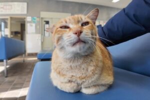 撫でられるとオデコは嬉しそうに、おばあちゃんも猫に喜んでもらって嬉しそうになるのでした。