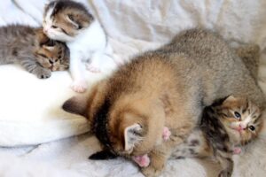 この音に眠っていた子猫は反応し、あれ?何?どうしたの?とばかりに物音のした方を見つめます。