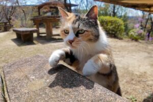 撮影者さんが近づいて野良猫に逃げる様子はありません。
