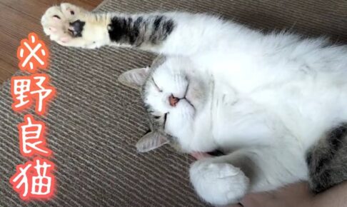 さらに撮影者さんが撫で続けると、野良猫は道路の真ん中で寝転がります。