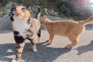 小さくてかわいいキジトラの子猫がミーミーとけたたましく鳴き続け、足元から一気に足を駆け上ってきました。小さい体なのにこのパワー。頂上にのぼりつめたら一旦、ぴょんと飛び降ります。